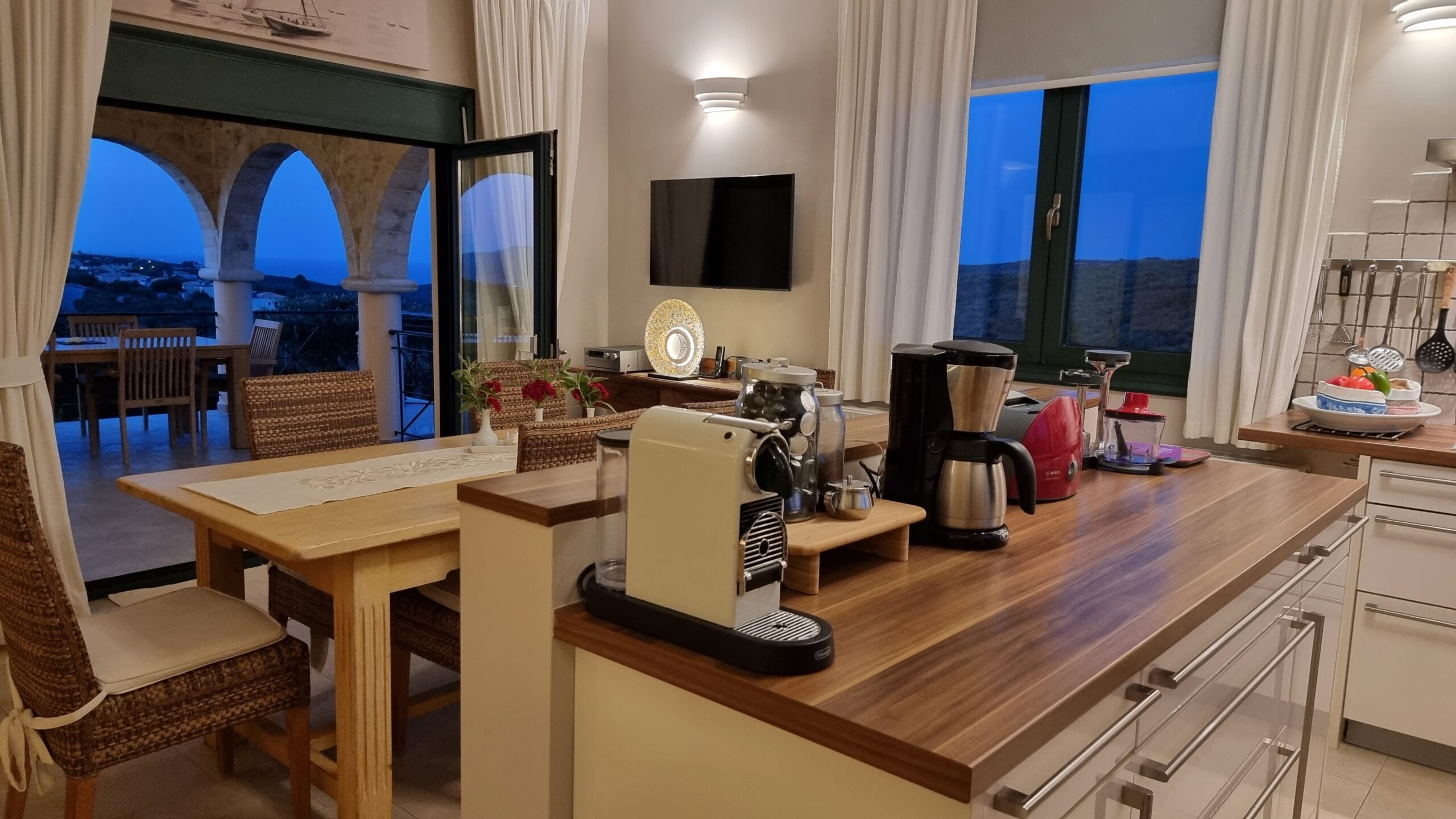 fully equipped kitchen with inside & outside sitting area